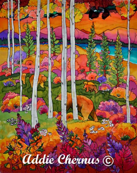 Autumn Tahoe is a silk painting inspired by living in Tahoe.