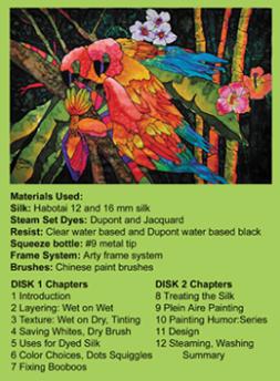 | ADDIE SILK ART DVD 1 Silk Painting Lessons 2 DVD Set This is a wonderful educational silk painting DVD containing 13 Chapters. Addie teaches how to paint on silk to create finished art. This DVD is for beginners to advanced students. Addie shows painting on silk with dyes to be a joyous, colorful and magical experience. All art in this DVD has been created by Addie who has a Masters Degree in Education. Language: English Format: 16:9 Widescreen, Color Time: Approx. 2 Hrs. and 45 Min. To order go to Dharma Trading (800) 542-5227 Dharma Trading Company |